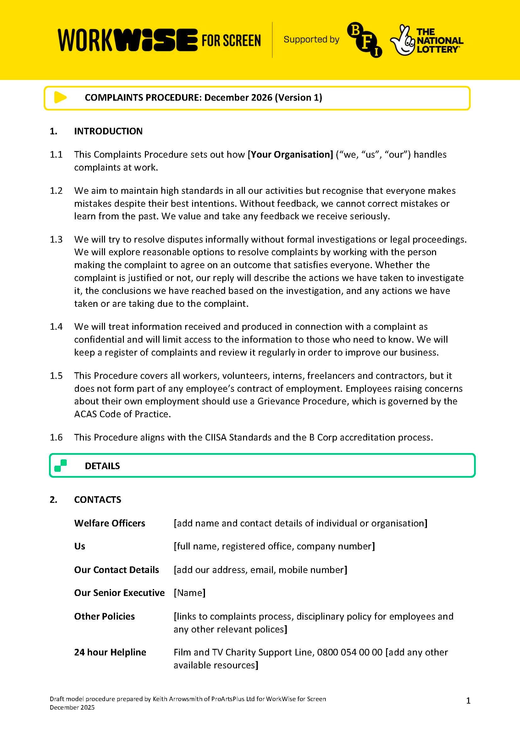 Because work in the screen industries often involves short-term engagements, freelance relationships and complex working arrangements, it is particularly important that complaints processes are clear, accessible and applied consistently.