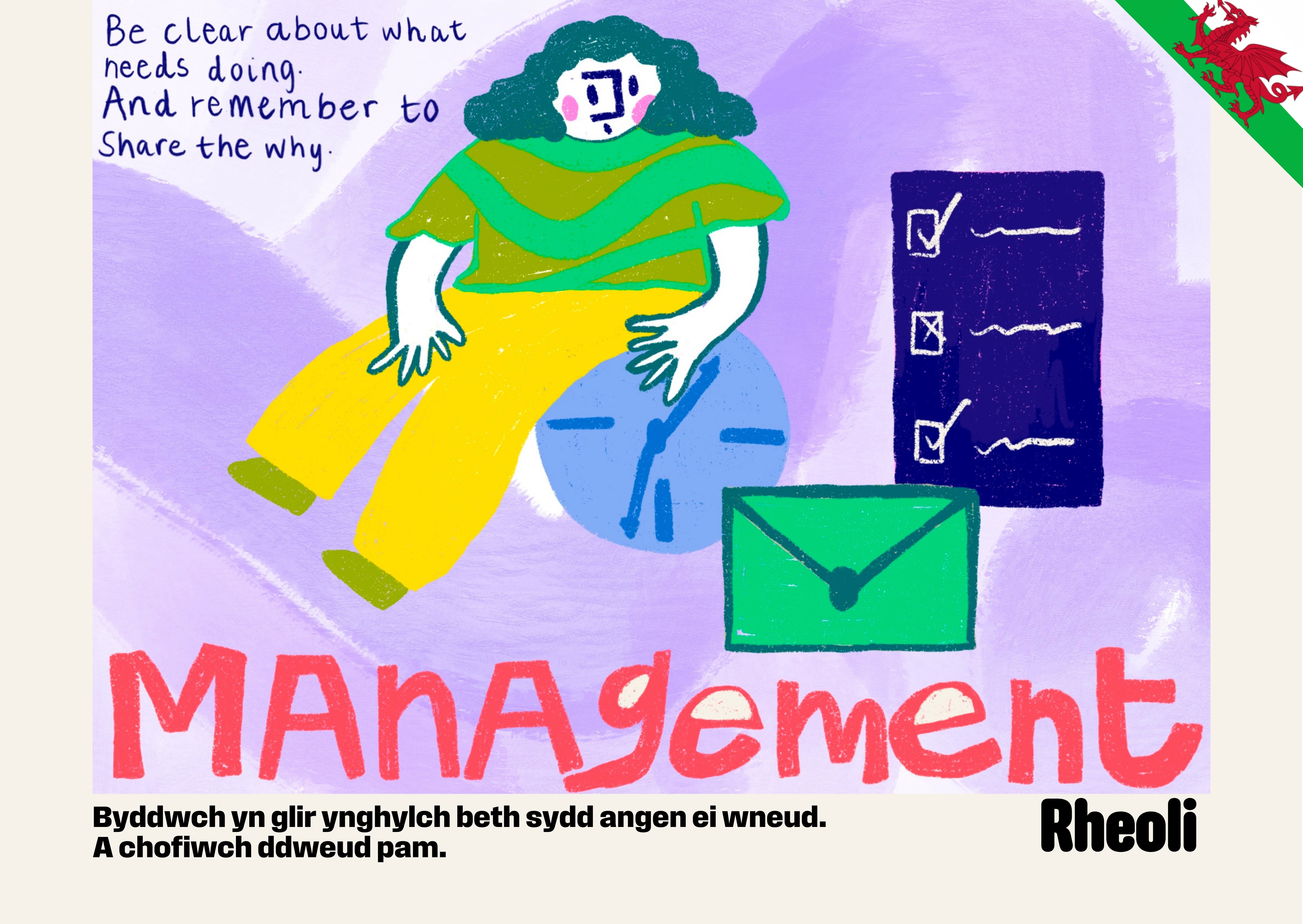 Pan fyddwch chi’n egluro beth yn union yw llwyddiant, ac yn helpu pobl i weld y darlun llawn, mae’n gyffrous ac yn ysgogol. Ac yn annog pobl i gydweithio.