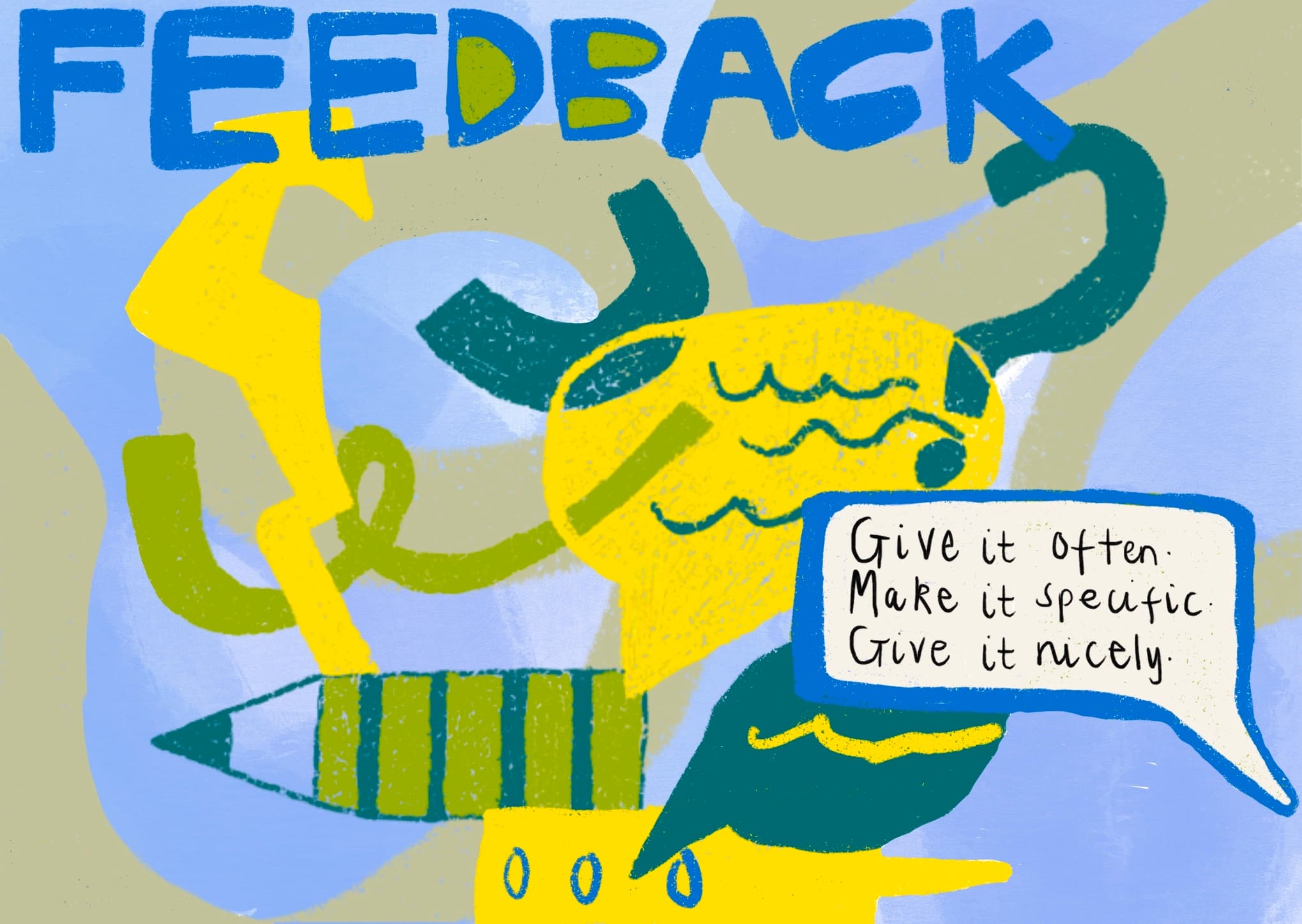 Act quickly – feedback can be best while the experience is still fresh, not weeks or months later. Use your regular catch-ups to open the dialogue. But if something important comes up, don’t be afraid to schedule a dedicated meeting, it shows that the feedback matters.